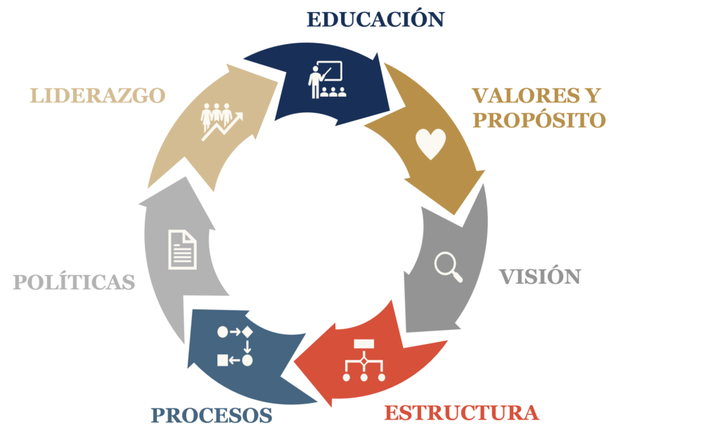 - Estructuras: Arquitectura de gobierno necesaria para dirigir la empresa y la familia de manera efectiva.